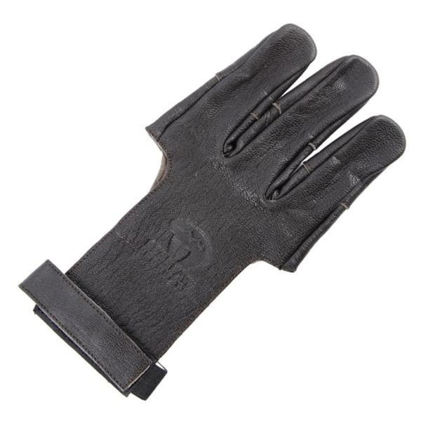 Der Schießhandschuh wird aus dunkelbraunem und feinem Ziegenleder hergestellt. Der Schießhandschuh ist fein und leicht, so garantiert einen guten Ablass der Sehne.
