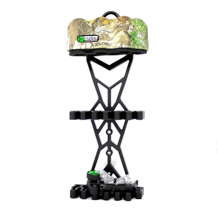 CAMO colored quiver accommodating 6 arrows with quick release/removal system. Equipped with advanced lightweight composite frame and gripper system with different diameters in each size.